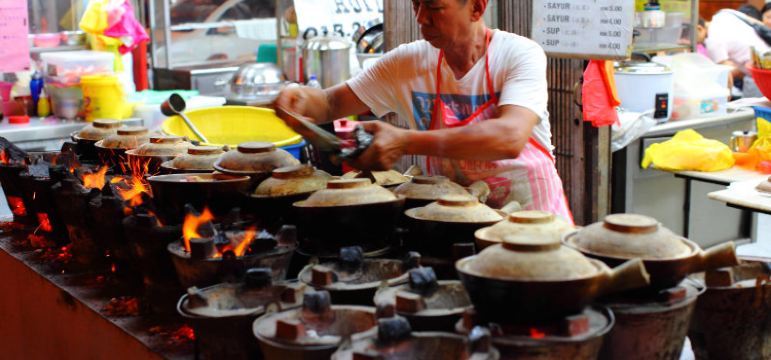Go early and watch them making these lovely meals right outside. Claypot Chicken Rice for 2 people 22 ringgit This specific eatery is popular. Generous bits of chicken Chinese lap Cheongs sausage slices.